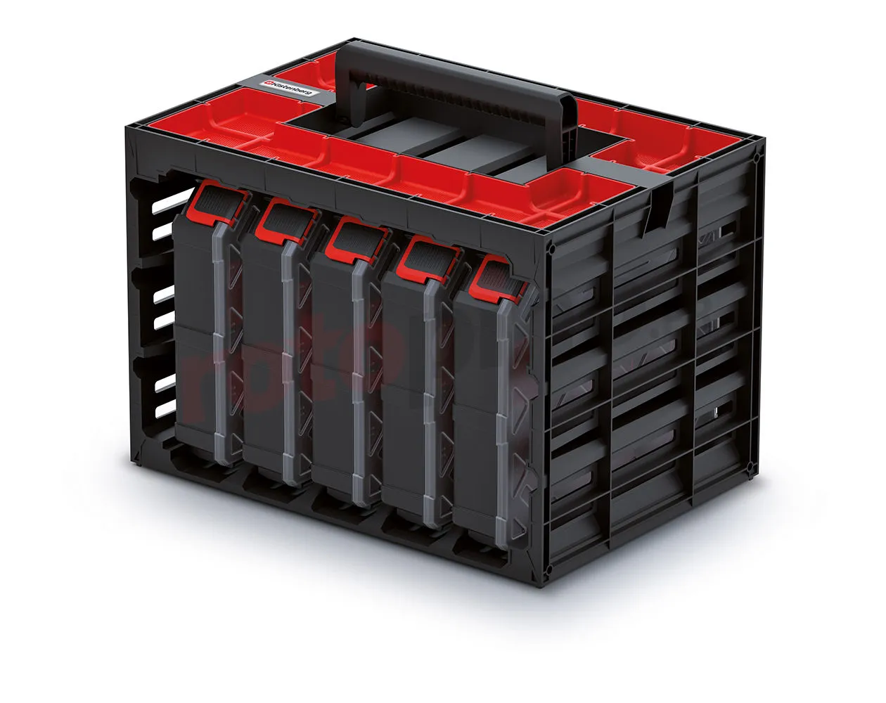 - Possibilité d’organiser le petit matériel dans 5 organiseurs de la série TAGER KTGC30256B avec des dimensions de 284x243x60mm.