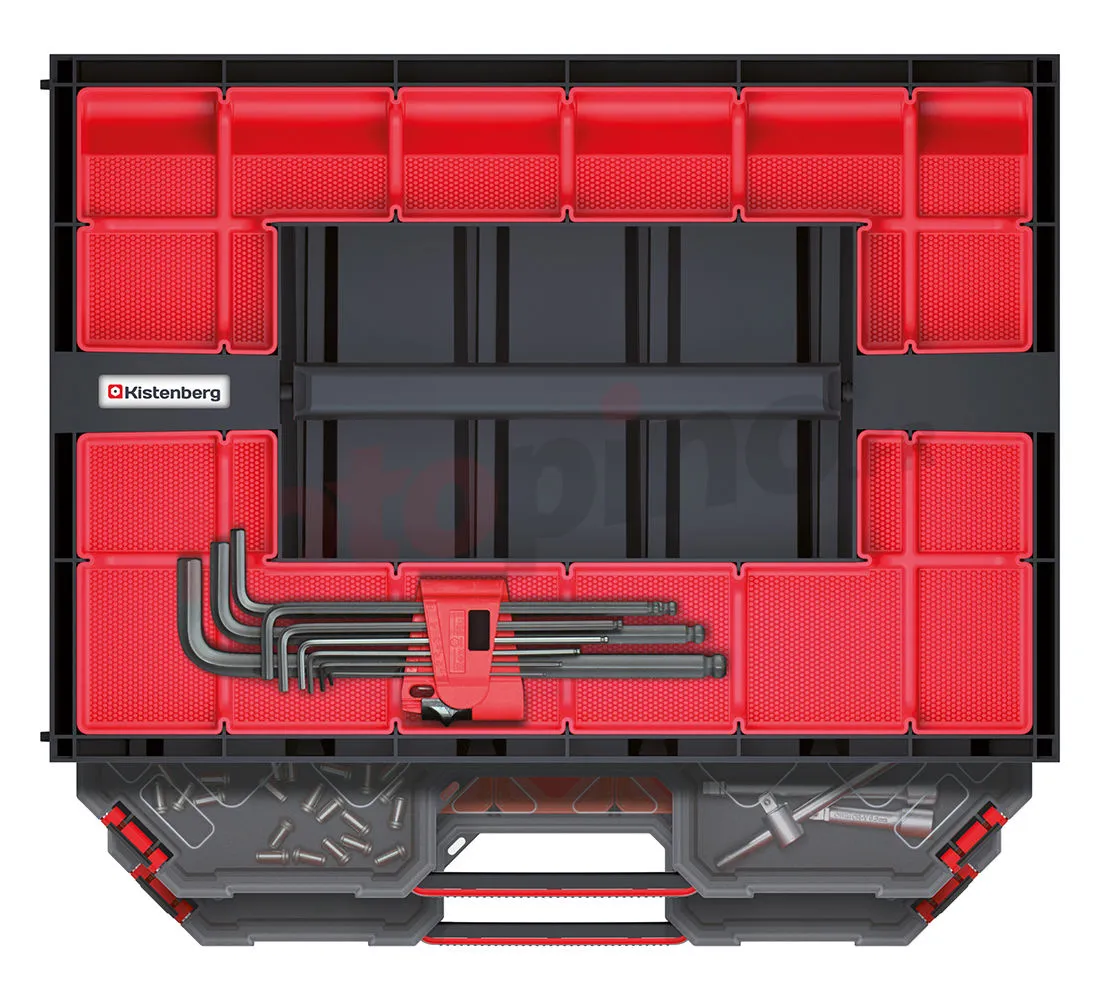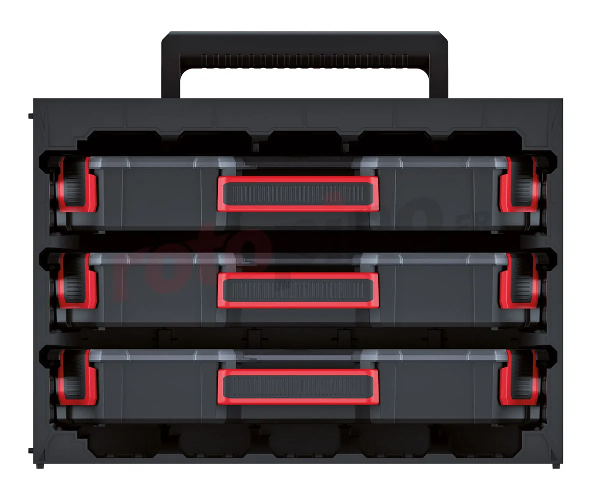 - Possibilité d’organiser le petit matériel dans 3 organiseurs de la série TAGER KTGC40306S avec des dimensions de 390x284x60mm.
