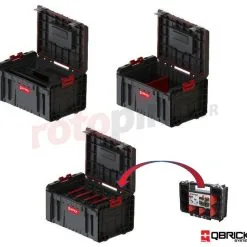 L’ensemble mobile de boîtes modulaires Qbrick System PRO SET II Z254386PG003 se compose de trois éléments qui permettent d’organiser des outils de petite et moyenne taille. La plate-forme inférieure se distingue par le plus petit écartement de roue parmi les servantes à outils professionnelles. Une structure solide avec une poignée télescopique permet de transporter jusqu’à 35kg de matériel. L’intérieur se compose d’un grand espace surmonté d’un grand plateau à outils. Le deuxième élément de l’ensemble se caractérise par une grande polyvalence. Le Tool Box a 3 compartiments à l’intérieur, qui peuvent être placés de 8 façons différentes. De plus, les mêmes compartiemnts font parties des organiseurs Multi de Qbrick System TWO. Au-dessus des compartiments, mais en conflit avec les organiseurs éventuellement achetés séparement, se trouve un plateau à outils similaire à celui du CART PRO. Le troisième élément est le PRO SET 2 de l’ensemble marqué d’un. Au lieu d’une valise pour des outils électriques, le fabricant propose le plus petit des organiseurs PRO avec le symbole 100. Un rapport taille/capacité exceptionnellement bon et 4 types de compartiments sont ses principaux avantages. Il est très pratique et fabriqué selon les normes élevées des systèmes Qbrick. Le combo de ces boîtes est conçu pour les professionnels qui ont besoin d’un espace mobile pour plusieurs outils électriques, accessoires et consommables. C’est également une excellente proposition pour les électriciens, les installateurs et les amateurs du bricolage.