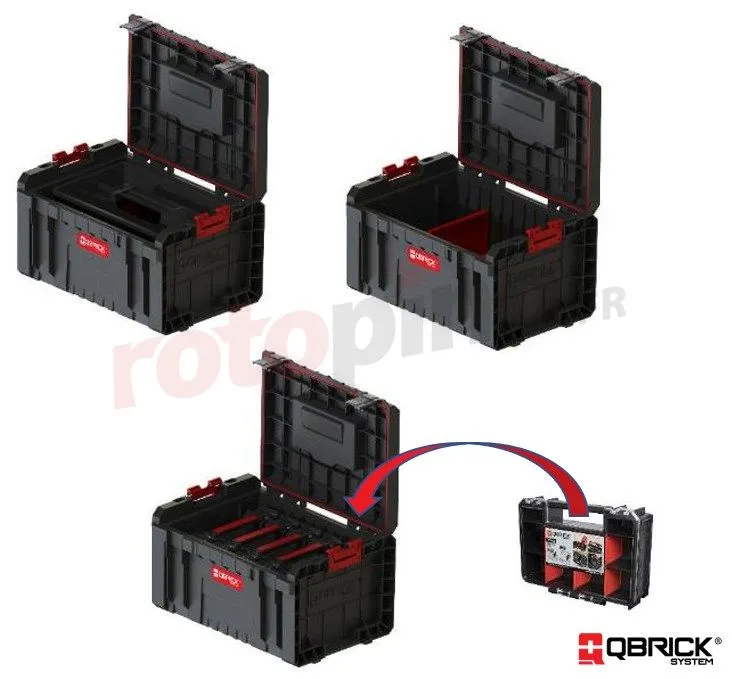 - Intérieur : plateau à outils, 3 compartiments amovibles, compatible avec 5 organiseurs QS TWO MULTI
