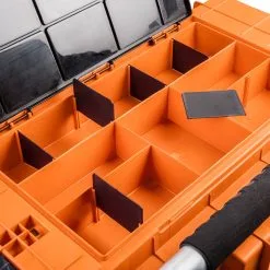 - Possibilité de fermer la boîte à cadenas garantit que les outils ne tomberont pas et seront stockés en toute sécurité