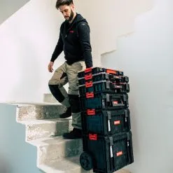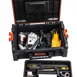 Boîte à outils modulaire PRO Technician Case Qbrick System SKRQSPTCCZAPG003 est un autre modèle qui a rejoint les mallettes du système PRO. À l’intérieur de la valise se trouve un plateau de grande capacité, qui peut être retiré à tout moment et emmené sur le lieu de travail avec les accessoires de votre choix. Le PRO Technician est également doté d’un couvercle robuste avec un joint d’étanchéité, ce qui vous permet d’avoir la certitude que vos accessoires et outils stockés seront protégés de la poussière et de l’humidité. Le Technician box est certainement une amélioration pratique du système PRO. Il peut également compléter les boîtes avec couvercles VARIO, du système Qbrick ONE. Fixé au sommet d’un atelier modulaire, il peut servir de boîte à outils pratique.