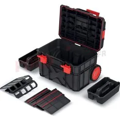 - Boîte équipée d’organisateurs pour outils à main ; compartiments et paniers, facilitant l’organisation de l’espace intérieur.
