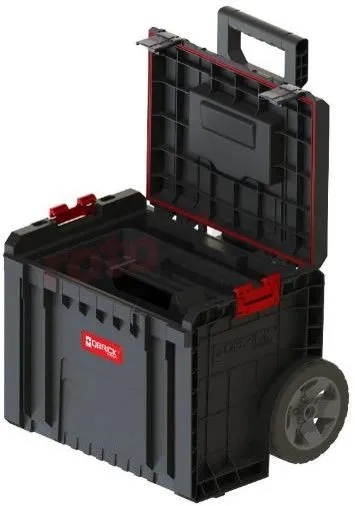 - Coffre mobile à roulettes PRO CART – coffre de taille moyenne sur roues avec un plateau amovible offrant un grand espace de rangement et un siège solide.