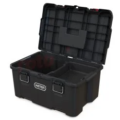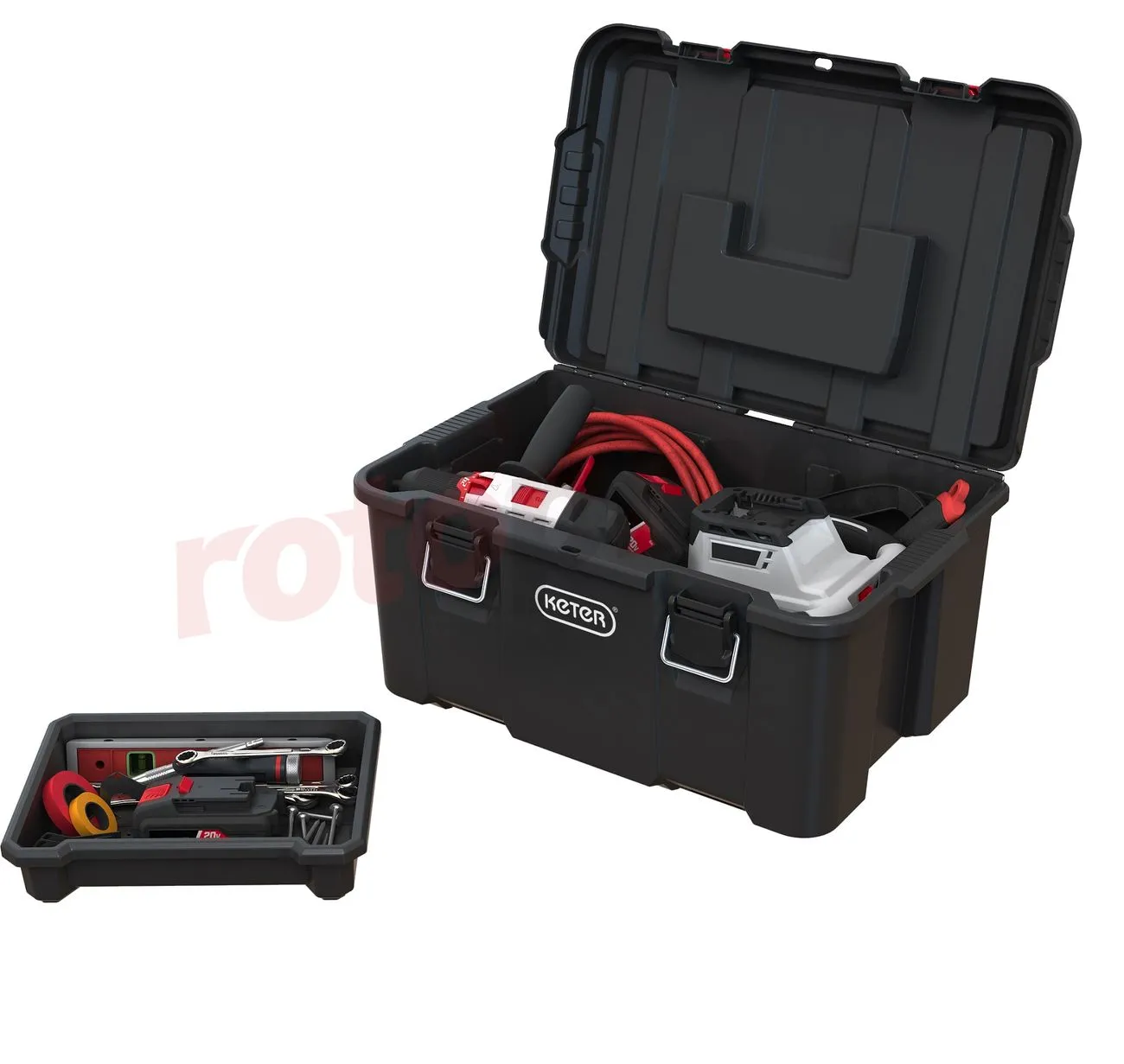 La boîte à outils Stack’N’Roll peut être utilisée par tous les mécaniciens, électriciens, charpentiers ou constructeurs. Grâce à sa grande contenance, la caisse pourra accueillir entre autres des petits outils et des ouitls électriques de petite taille. À l’intérieur de la caisse à outils, il y a un plateau pour les petits objets que vous voulez avoir à portée de main. Grâce à cela, vous pouvez facilement maintenir l’ordre. Cette boîte est compatible avec d’autres produits de la série Stack’n’Roll, ce qui permet d’assembler et de créer facilement n’importe quel ensemble adapté aux besoins de chacun. Ceci est possible grâce à des loquets spéciaux situés sur le devant de la boîte. Si nécessaire, la caisse à outils peut être verrouillée avec un cadenas. La boîte à outils modulaire Stack’N’Roll est fabriquée à partir de matériaux de haute qualité, grâce auxquels elle résiste à toutes sortes de dommages mécaniques et chimiques. C’est une garantie de la marque Keter.