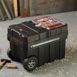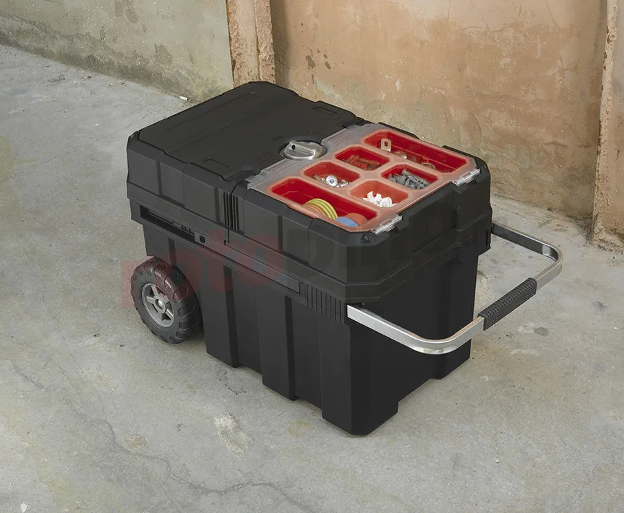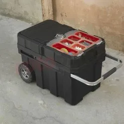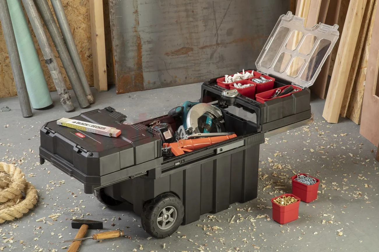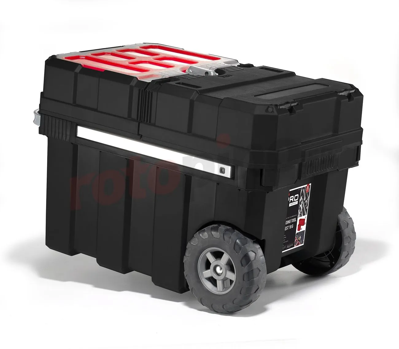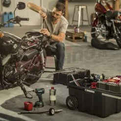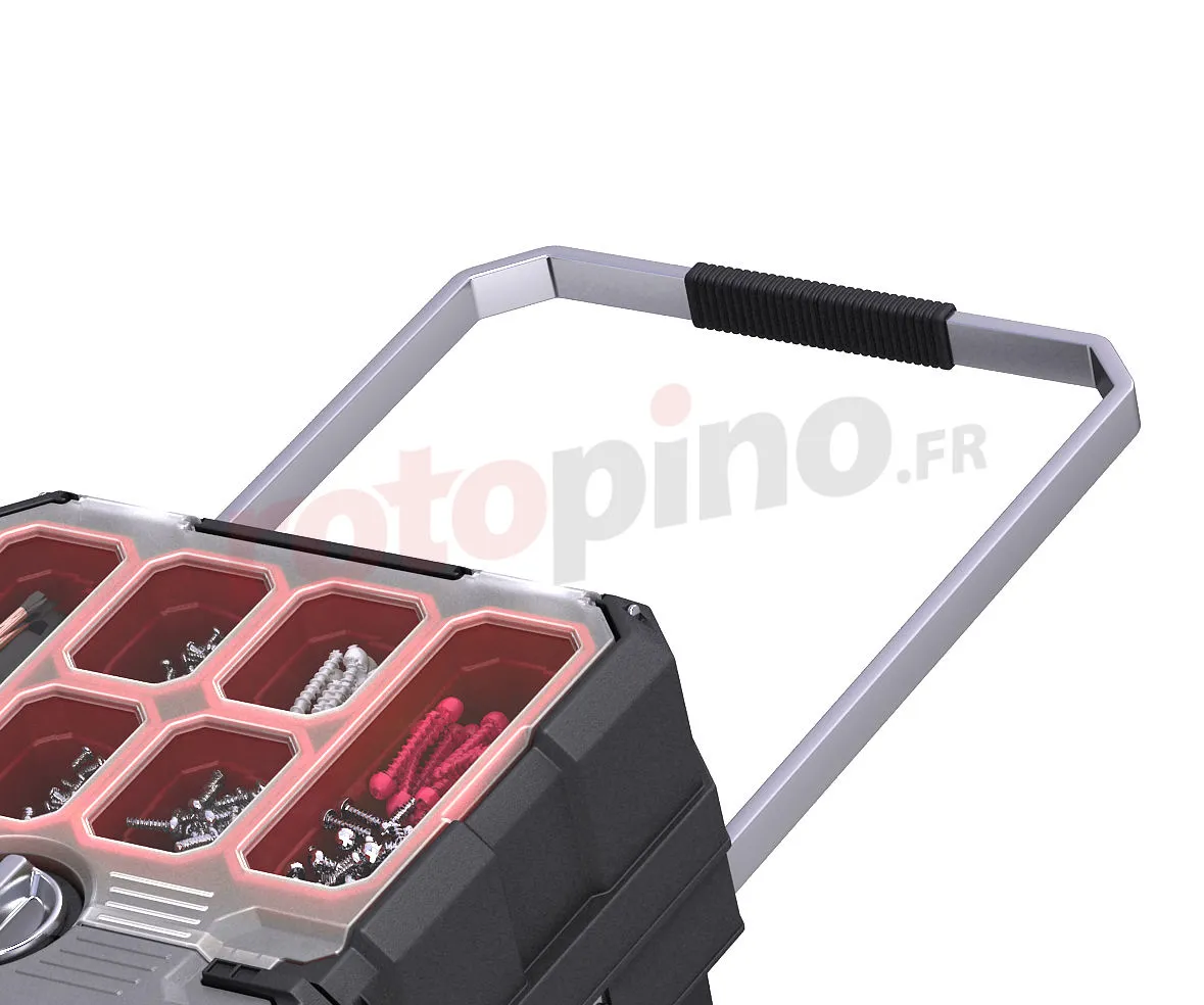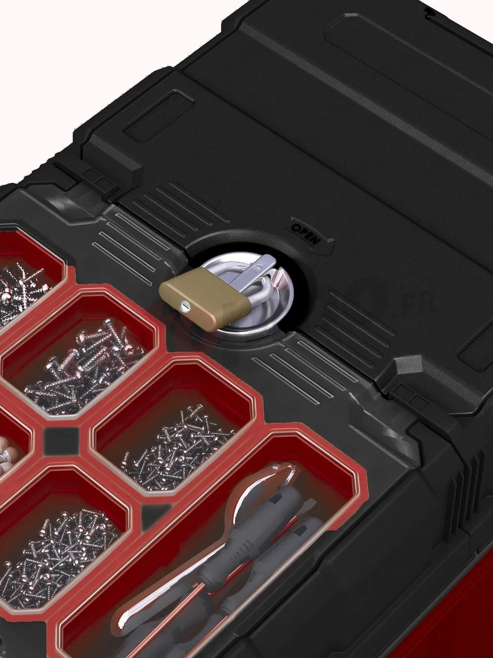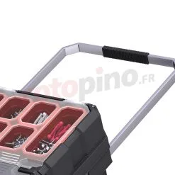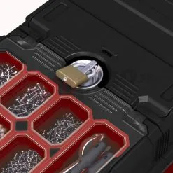 Boîte Masterloader sur roues de la célèbre marque Keter est une excellente solution pour le stockage et l’utilisation confortable d’une large gamme d’équipements, d’outils et de petits accessoires. Parfait pour les professionnels, mais tout aussi utile dans n’importe quelle maison. Ce produit est équipé d’un organisateur intégré, de nombreux conteneurs et de compartiments réglables, ce qui vous permet de regrouper le contenu et de travailler plus efficacement. Le caisson est doté d’un mécanisme coulissant avec roulements à billes qui permet de déplacer horizontalement les éléments supérieurs. Cela vous donne un accès presque instantané aux outils dont vous avez besoin. La caisse Masterloader sur roulettes est dotée d’une poignée métallique amovible à prise souple qui, associée à des roulettes solides, assure un transport facile et confortable. La serrure centrale installée augmente la sécurité du stockage des accessoires de travail. Le produit est fabriqué en plastique de haute qualité, ce qui se traduit par une structure solide et fiable.
