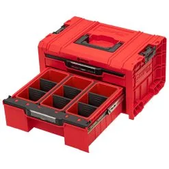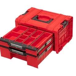 Boîte à outils modulaire PRO RED Ultra HD DRAWER 2 TOOLBOX EXPERT Qbrick System SKRQPROD2ECZEPG001 est un produit polyvalent et extrêmement robuste qui permet d’organiser aussi bien les petits consommables que les accessoires en plastique de plus grande taille, ainsi que les outils à main et les petits outils électriques. Le tiroir supérieur, équipé de séparateurs amovibles et de godets amovibles, offre un espace pour les petits articles et les outils manuels ou de mesure de précision. Le compartiment inférieur est deux fois plus haut et divisé en trois parties égales. Les parois intérieures peuvent être retirées pour créer de l’espace pour les outils électriques de petite et moyenne taille. Il y a également 3 grands bacs avec leurs propres séparateurs amovibles. Ces bacs conviendront parfaitement aux accessoires de grande taille ou à ceux qui nécessitent beaucoup d’espace de rangement. L’armoire peut être accrochée au mur dans l’atelier ou fixée à deux systèmes de boîtes à outils de Qbrick. Sa fonctionnalité en fait un équipement indispensable pour tous les professionnels.
