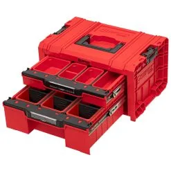 Boîte à outils modulaire PRO RED Ultra HD DRAWER 2 TOOLBOX EXPERT Qbrick System SKRQPROD2ECZEPG001 est un produit polyvalent et extrêmement robuste qui permet d’organiser aussi bien les petits consommables que les accessoires en plastique de plus grande taille, ainsi que les outils à main et les petits outils électriques. Le tiroir supérieur, équipé de séparateurs amovibles et de godets amovibles, offre un espace pour les petits articles et les outils manuels ou de mesure de précision. Le compartiment inférieur est deux fois plus haut et divisé en trois parties égales. Les parois intérieures peuvent être retirées pour créer de l’espace pour les outils électriques de petite et moyenne taille. Il y a également 3 grands bacs avec leurs propres séparateurs amovibles. Ces bacs conviendront parfaitement aux accessoires de grande taille ou à ceux qui nécessitent beaucoup d’espace de rangement. L’armoire peut être accrochée au mur dans l’atelier ou fixée à deux systèmes de boîtes à outils de Qbrick. Sa fonctionnalité en fait un équipement indispensable pour tous les professionnels.