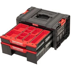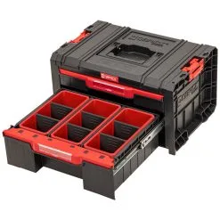 Boîte à tiroirs modulaire PRO DRAWER 2 TOOLBOX EXPERT Qbrick System SKRQPROD2ECZAPG001 est la boîte à tiroirs la plus polyvalente de la ligne PRO Black. Le petit tiroir, doté de séparateurs et de godets de différentes formes et capacités, permet une organisation pratique des petits accessoires et des petits outils à main. Le tiroir inférieur, deux fois plus profond que le tiroir supérieur, est doté de deux séparateurs qui le divisent en trois compartiments égaux pouvant accueillir de petits outils électriques tels qu’un système 12V. En outre, la version Expert du tiroir comporte 3 grands bacs dotés de leurs propres séparateurs amovibles. De cette manière, le tiroir le plus grand peut également être utilisé pour les consommables volumineux ou de grande taille. Les tiroirs de boîtes à outils sont des modèles de boîtes extrêmement pratiques qui peuvent fonctionner indépendamment ou faire partie d’un système mobile ou stationnaire étendu.