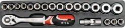 - Douilles 1/2 « : 10, 11, 12, 13, 14, 15, 16, 17, 18, 19, 20, 21, 22, 23, 24, 27, 30, 32 mm