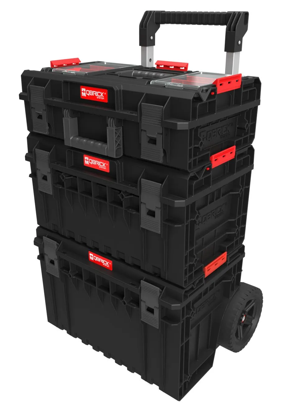 Ensemble mobile de boîtiers modulaires System ONE CART PROFI SET 2.0 Qbrick Z258032PG001 remplace l’ancien combo Z251071PG001. L’ensemble comprend deux valises avec des organisateurs dans le couvercle. Leur équipement avec compartiments et seaux est optimal pour gérer les petits et gros outils à main, les outils électriques et leurs accessoires. De plus, un total de 4 espaces supplémentaires fermés par des rabats résistants aux chocs offrent un espace supplémentaire pour les petits objets. Le CART super mobile, outre ses excellentes propriétés de conduite, est le plus grand coffre équipé de deux compartiments et de deux plateaux à outils qui conviennent également au 350. Des connecteurs supplémentaires sur le CART sont une option pour se connecter au système PRO plus petit et aux boîtiers de « service » PRO600 populaires.