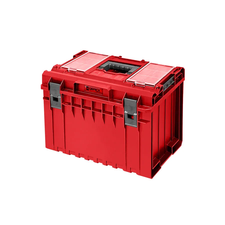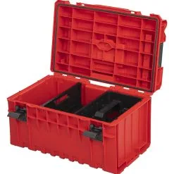 La boîte modulaire Qbrick System SKRQ450PCZEPG003 ONE 450 Profi Ultra HD RED est une boîte solide en plastique très résistant pour les plus gros outils. Équipée de deux compartiments interchangeables avec des plateaux à outils inclus, il crée de nombreuses possibilités pour transporter de gros équipements et leurs petits accessoires. Un couvercle épais avec des organiseurs résistants aux chocs est un autre espace pour les accessoires et une plate-forme plate sur laquelle même le plus grand bricoleur peut se tenir debout. Le QS 450 se démarque de la concurrence par la taille des passages de roues de type Cart, mais sans perdre l’espace à l’intérieur des passages de roues et de l’axe des roues. Plusieurs boîtes comme celle-ci sur une plate-forme à roues permettront de transporter une énorme quantité d’outils.
