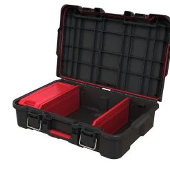 La caisse à outils Stack’N’Roll est la solution idéale pour ranger les outils électriques ou autres accessoires que vous souhaitez protéger de la poussière ou du contact avec l’eau. Grâce à un joint spécial dans le couvercle, le contenu de la caisse reste protégé contre les facteurs externes. La caisse à outils est équipée de 2 compartiments amovibles et d’un petit organiseur pour les petites pièces qui peuvent être installés à l’intérieur ou placés sur le couvercle de la caisse. La poignée avec un revêtement en caoutchouc souple assure le confort pendant le transport, et les poignées latérales permettront de soulever et de déplacer facilement la boîte à un autre endroit. Grâce au système de fixation innovant, il est entièrement compatible avec les autres modules de la série Stack’N’Roll.