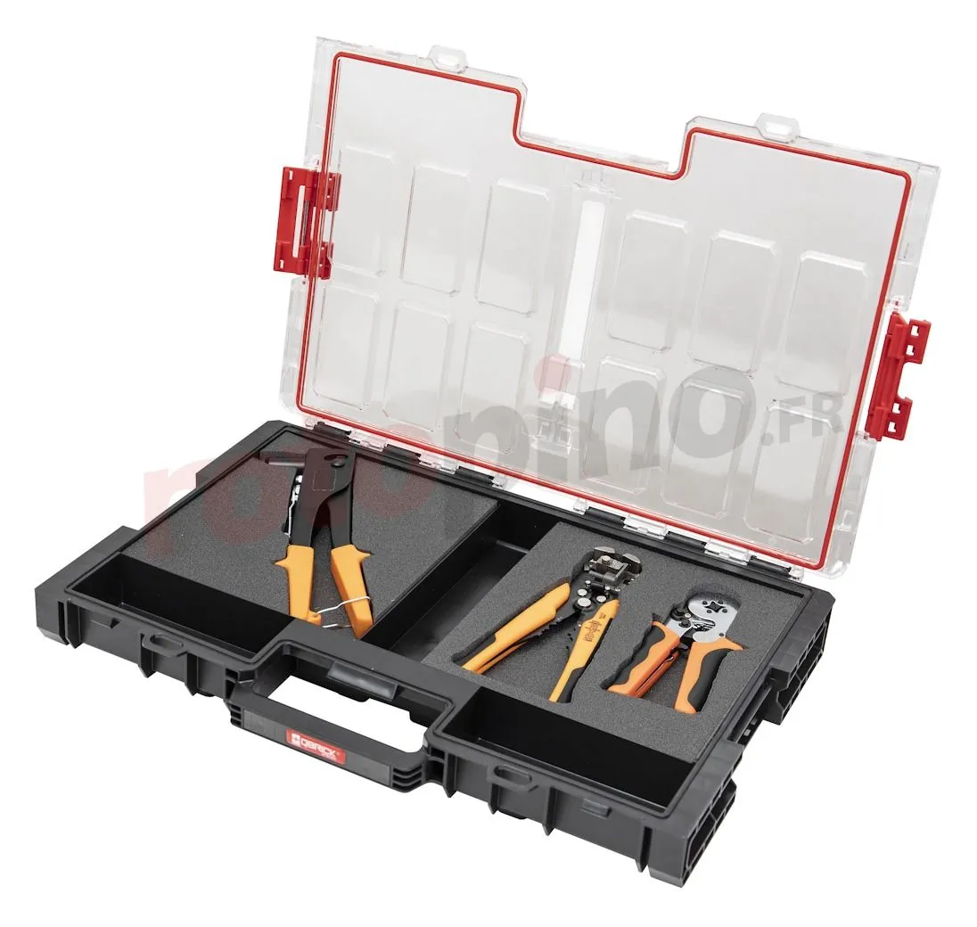 - Grand organisateur modulaire avec mousse multicouche à découper pour petits outils électriques et outils manuels ou compartiments avec accessoires.