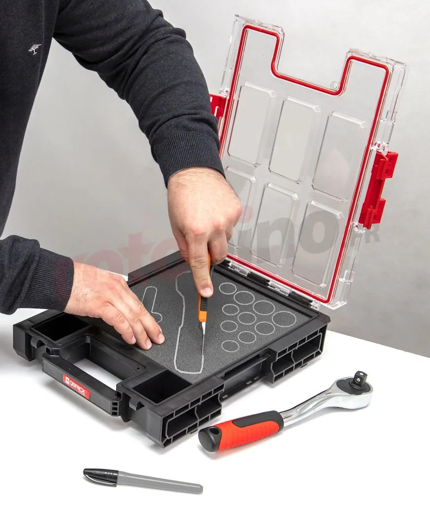 Le petit organisateur modulaire Qbrick System ONE ORGQMFCZAPG003 avec insert en mousse est une mallette pratique pour ranger et transporter de petits outils. L’insert en mousse permet d’organiser indépendamment l’intérieur de la boîte et de l’ajuster selon vos besoins. Il suffit de couper la mousse à la forme et à la profondeur appropriées, puis de coller les deux couches pour qu’elles ne se déplacent pas l’une contre l’autre. L’organizer M accueillera facilement des outils électriques plus petits ou des outils manuels, et le couvercle transparent permettra de vérifier son contenu à tout moment. L’organisateur fait également partie du système Qbrick ONE – un système qui peut être combiné dans différentes configurations, créant ainsi un système de transport et de stockage personnalisé pour les outils. Le petit organiseur Qbrick peut être combiné avec les mêmes organiseurs et les organiseurs L et XL deux fois plus grands.