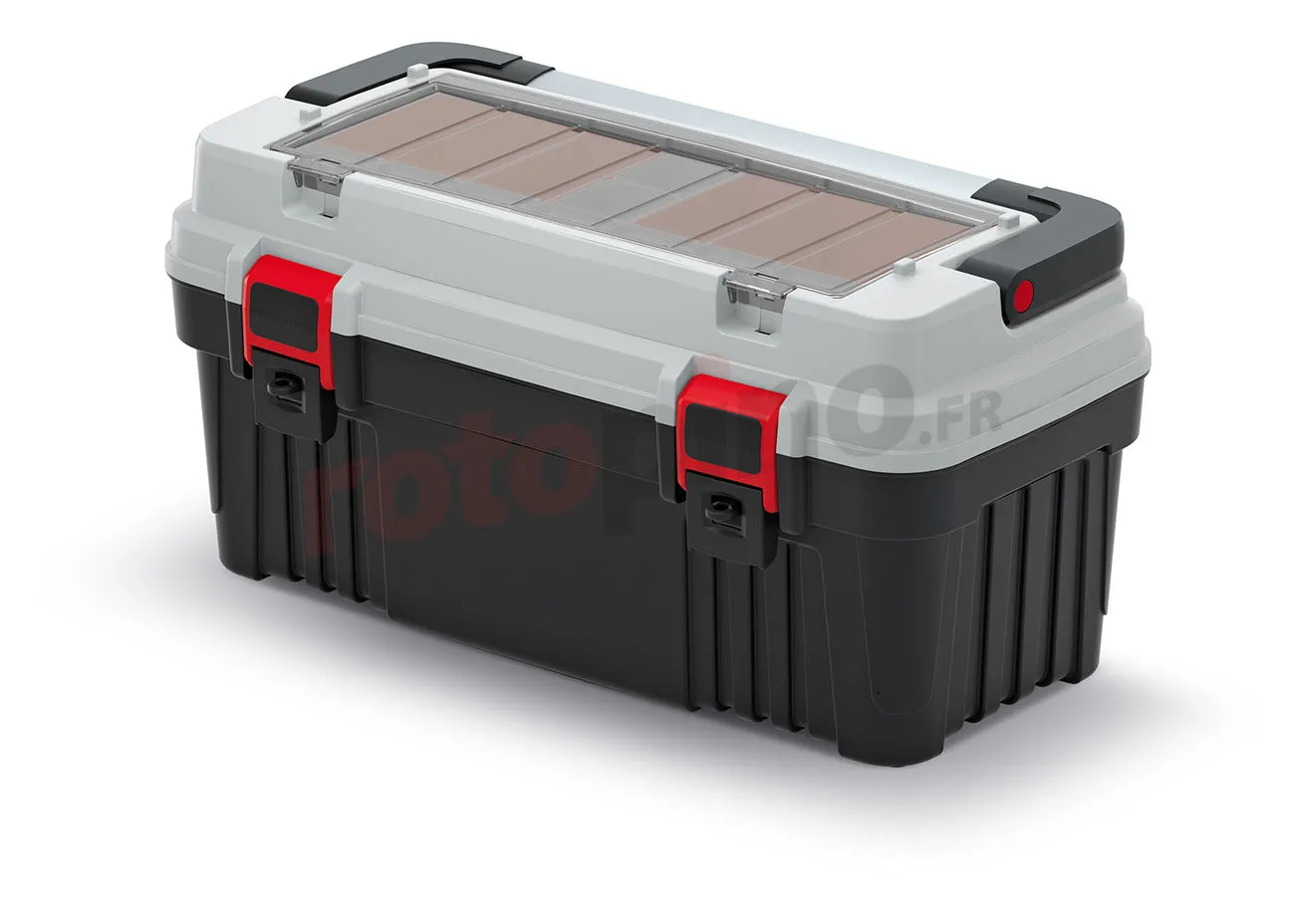 - Grande caisse avec compartiments avec couvercle en polycarbonate durable.