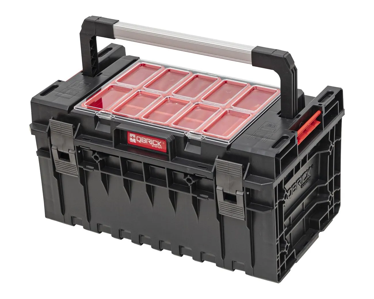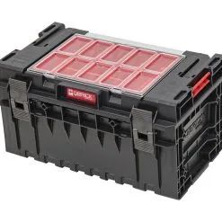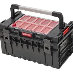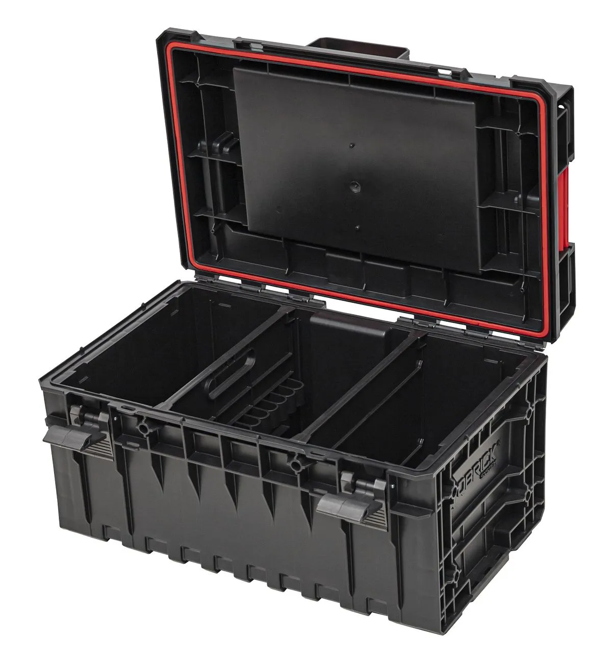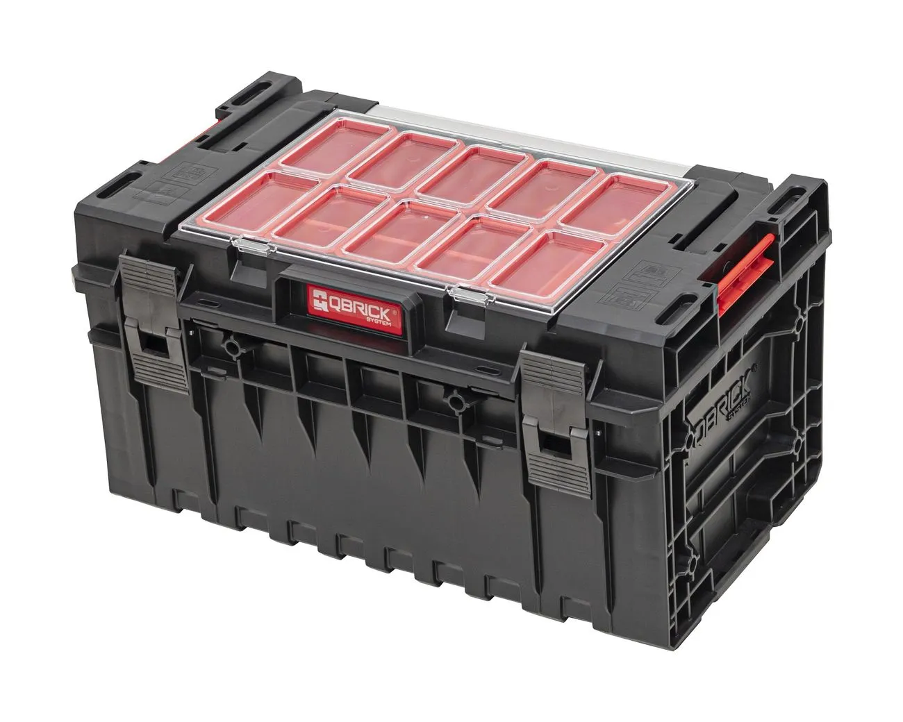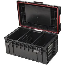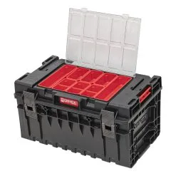 La caisse à outils modulaire Qbrick ONE 350 EXPERT version 2.0 SKRQ350E2CZAPG011 est une caisse innovante avec des emplacements pour les inserts et un couvercle qui sert comme un grand organiseur. Le couvercle transparent en polycarbonate cache 8 bacs de tailles différentes, mais les mêmes que dans les organiseurs bas QS PRO, ONE L et M. Le couvercle du grand coffre ainsi équipé fait de l’Expert 350 une parfaite caisse polyvalente indépendante. L’intérieur a deux séparateurs, 4 fentes pour eux et des crochets pour les plateaux à outils. Après avoir installé les séparateurs, par exemple Multi avec des supports pour outils à main ou après les avoir remplacés par des plateaux à outils, il est possible de configurer l’intérieur de la boîte de manières très différentes. Une autre caractéristique unique de ce modèle est la longue poignée qui permet de la transporter à deux personnes.