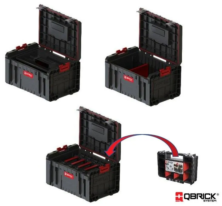 - Intérieur : plateau à outils, 3 compartiments amovibles, compatible avec 5 organiseurs QS TWO MULTI