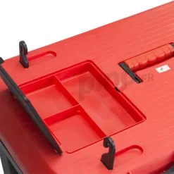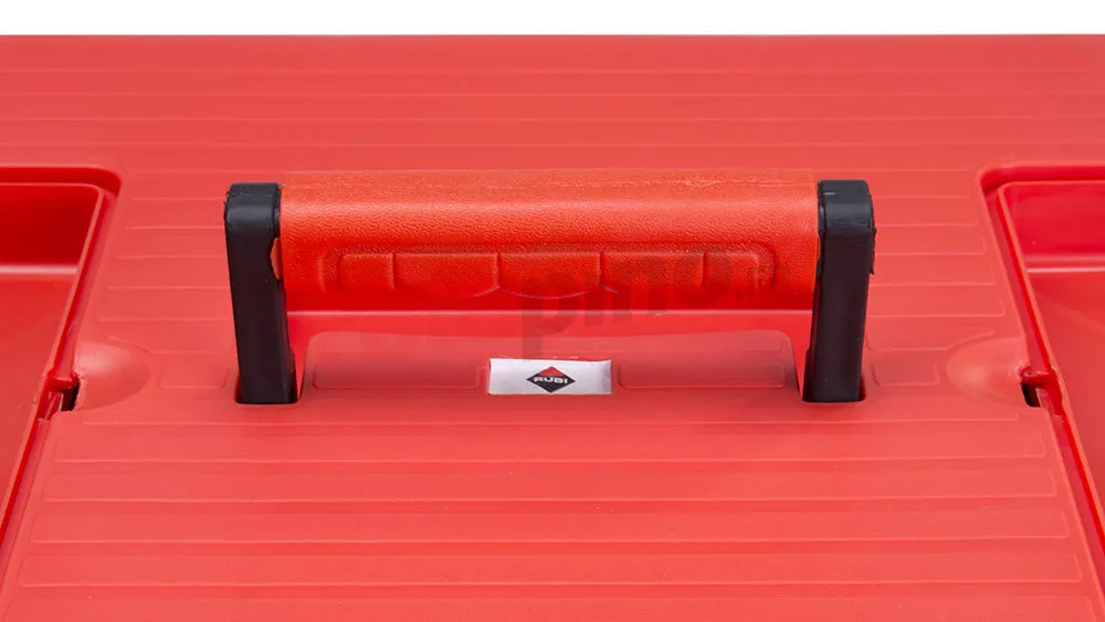 La boîte à outils Rubi 75965 est une solution pratique qui sera appréciée des professionnels. Elle se caractérise par une construction en plastique durable. La boîte à outils d’une capacité de 89l peut accueillir de nombreux outils et accessoires. Elle est équipée d’un plateau avec des compartiments supplémentaires et de deux conteneurs sur le couvercle, qui permettent de trier divers petits objets. Elle dispose également de 4 crochets, qui, associés à des caoutchoucs élastiques (caoutchoucs vendus séparément), permettent d’attacher divers objets à la caisse. Grâce à deux grandes roues en caoutchouc et à une poignée rétractable, la caisse à outils peut être facilement déplacée d’un endroit à l’autre.