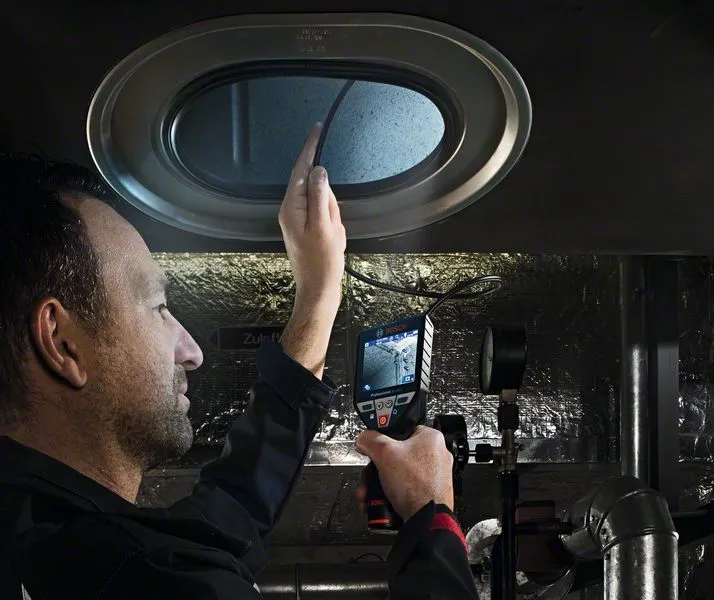 Caméra d’inspection GIC 120 C Bosch 0601241208 est conçue pour inspecter les zones difficiles d’accès et sombres. L’appareil sera également utilisé pour déplacer des objets petits et légers, par exemple des vis, car des accessoires spéciaux inclus dans l’équipement peuvent être montés sur la tête de caméra. La caméra peut être alimentée par une batterie Li-ion 12V ou des piles AA. Le modèle GIC 120 C est équipé d’une carte micro SD et d’un câble micro USB, grâce auxquels il est possible de transférer l’image et la vidéo de la caméra vers un ordinateur.
