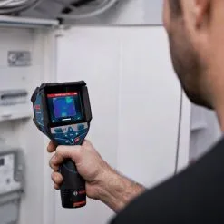 La caméra thermique GTC 600 C Bosch 0601083508 est conçue pour une détection rapide des différences de température, tant à l’extérieur qu’à l’intérieur. La résolution thermique élevée et la large plage de mesure permettent des résultats de mesure précis. Grâce à la fonction de mémo vocal, l’opérateur peut enregistrer ses observations sous forme d’audio – les pistes sont enregistrées dans un format pouvant être lu sur la plupart des appareils. L’application Bosch Thermal et le système de transfert GTC rendent la documentation thermique rapide et facile. L’interface intuitive facilite l’utilisation de la caméra et l’image claire évite les erreurs de lecture. L’opérateur peut choisir parmi de nombreuses fonctions, telles qu’une émissivité prédéfinie ou une fonction de galerie améliorée avec des images thermiques et réelles. Ce modèle permet également de détecter les défauts d’isolation ainsi que les échauffements et refroidissements indésirables de points spécifiques. La conception de la caméra thermique est très solide, elle peut donc résister à une chute d’une hauteur allant jusqu’à 2m. Le haut degré de protection permet d’utiliser l’appareil dans des conditions difficiles, sans se soucier de sa durée de vie.