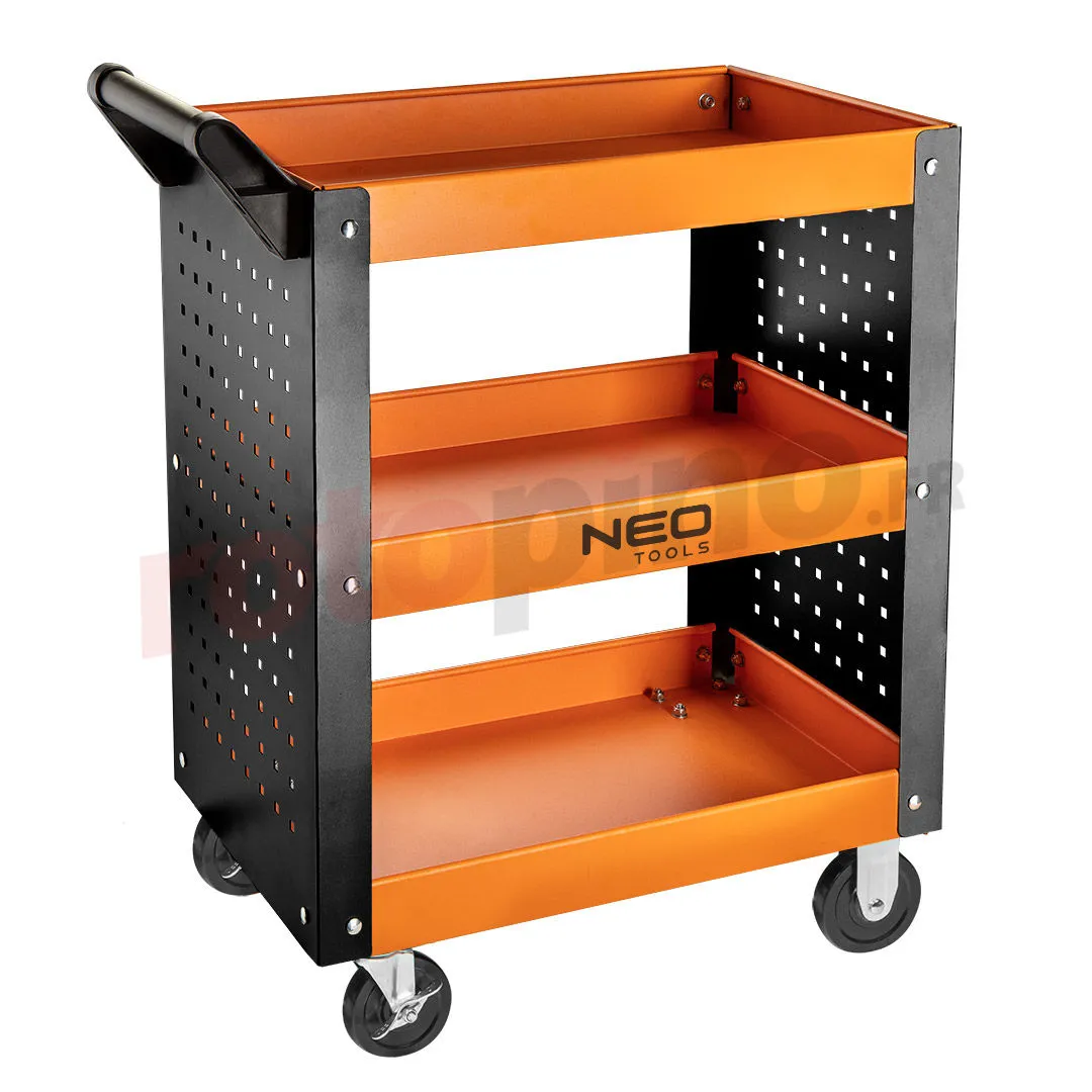 Chariot d’atelier avec étagères Neo 84-229 est une version économique complétant l’offre d’armoires à outils Neo. Le corps et les étagères du chariot sont en acier, ce qui les rend très durables. Sur les parois latérales perforées, il est possible de fixer des crochets auxquels vous pouvez accrocher divers accessoires. Grâce aux trois étagères, il sera également facile d’organiser des outils de plus en plus petits. La conception ouverte du chariot rend tous les équipements facilement accessibles. La construction du chariot est complétée par des roues en polypropylène durables et une poignée, grâce auxquelles le chariot est facile à déplacer pendant le travail.