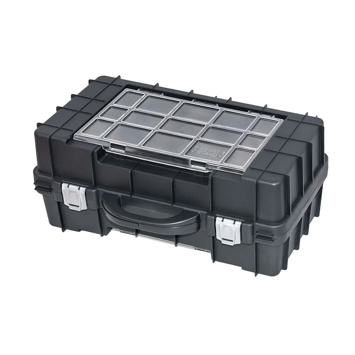 Le coffre à outils HD Case Carbo Patrol ELEKTROHDCARCZAPG001 est conçu pour transporter et ranger des petits outils électriques voir plus grands. Le modèle HD Case Carbo se caractérise par une construction durable, qui est renforcée par les nervures sur le couvercle. À l’intérieur du coffre il y a une plaque d’acier et une couche de protection en mousse, grâce auxquelles les outils sont mieux protégés contre les dommages mécaniques. Une protection supplémentaire est également fournie par des sangles réglables qui empêchent le contenu de se déplacer pendant le transport. Le coffre est également équipé d’organiseurs Expert pratiques qui se trouvent des deux côtés. Il est également possible de ranger de petits accessoires et consommables. Les organiseurs ont des couvercles en polycarbonate. La poignée pratique est également une commodité.