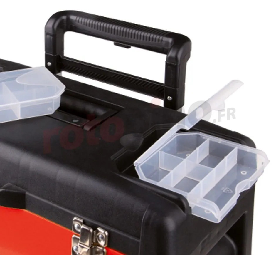 - Le module supérieur est une des dimensions de la boîte à outils et de la capacité 20 kg 420x220x150mm muni de deux organisateurs de la barre d’outil coulissant et