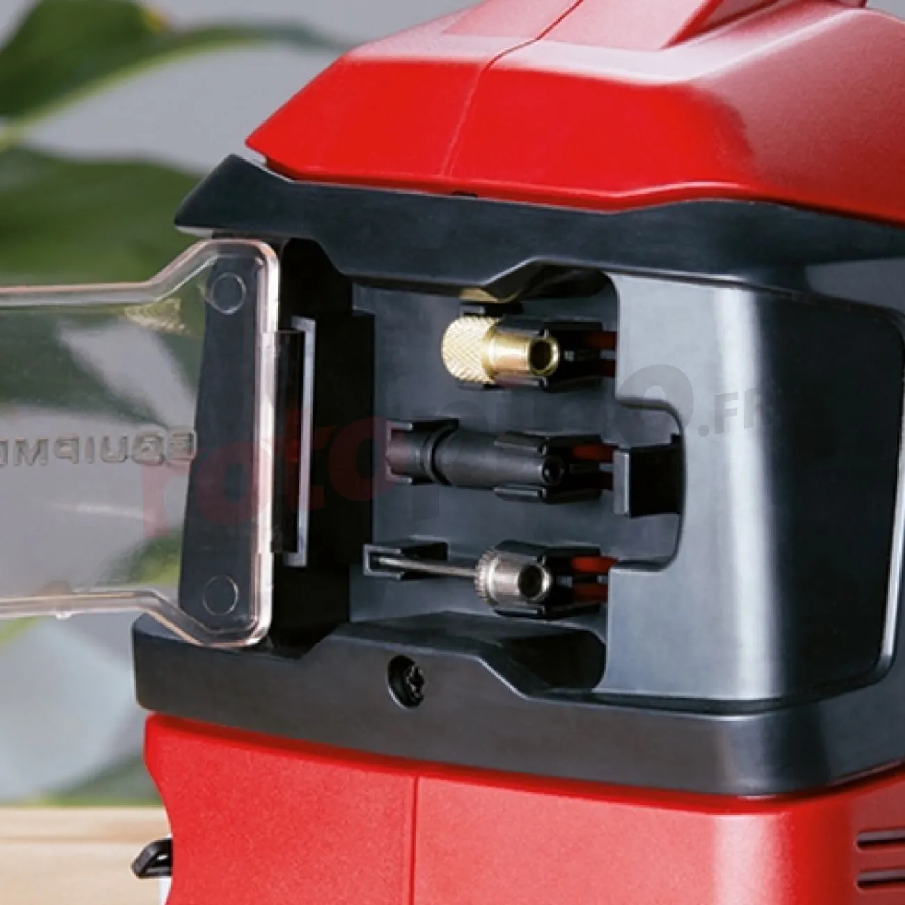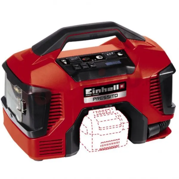 Compresseur portable Presitto Einhell 4020460 est un appareil qui sera utile dans tous les foyers. Grâce à lui, nous pouvons gonfler efficacement une roue de vélo, une balle, un matelas, etc. L’appareil est également équipé d’une fonction d’aspiration d’air, qui permet de dégonfler l’air des jouets gonflables ou des meubles de jardin. Le compresseur peut être alimenté par la batterie lithium-ion 18V Power X-Change, ainsi que par le réseau 220-240V / 50-60Hz, grâce auquel l’utilisateur a