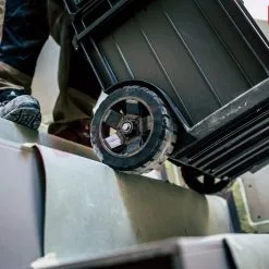 - Roues solides – deux grandes roues sur un axe en acier de 12 mm garantissent une grande maniabilité et un transport facile sur le chantier et dans les escaliers