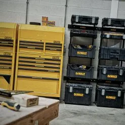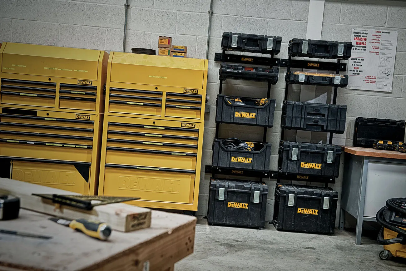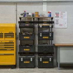 - Système unique d’étagère d’atelier qui s’adapte aux boîtes DeWALT Tough System.