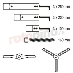 - La longueur de l’extracteur à trois pieds: 100/200 et 250 mm