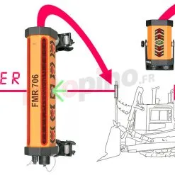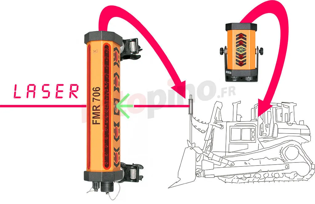 Le FMR 700 est un détecteur laser précis et durable de la marque allemande geo-FENNEL monté sur des engins de chantier tels qu’un bulldozer ou une niveleuse afin de raccourcir le temps et multiplier la précision du niveau du sol et du ballast. Il comprend 2 éléments: un détecteur monté sur machine et un répéteur dans la cabine de l’opérateur. Le FMR 700 est monté sur la machine de deux manières: à l’aide d’aimants puissants en néodyme ou avec des pinces fermées et vissées. Le détecteur détecte un faisceau laser rouge émis par un laser rotatif dans la plage de 360 ° et fonctionne avec des instruments de différents fabricants. Le boîtier de l’appareil en aluminium solide est résistant à la poussière et à l’eau conformément à la norme IP66. L’écran réalisé sous forme de jeux de LED lumineuses est visible dans toutes les conditions d’éclairage.