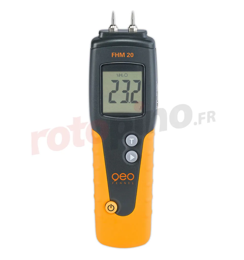 L’humidimètre numérique FHM 20 est un appareil professionnel avec un affichage numérique de la célèbre société allemande geo-FENNEL. L’appareil est adapté aux mesures dans le bâtiment (matériaux de construction: placo-plâtre plâtre, béton, chape de béton, mortier, carton, papier), dans l’industrie du bois (calibré sur 170 espèces de bois en 8 groupes) ainsi que pour des utilisateurs individuels. La haute précision de ±1% garantit des résultats de mesure fiables. L’humidimètre détermine le degré de pénétration d’humidité, d’infiltration de matériau ou d’humidité de surface et les endroits secs et humides. Il permet également des mesures de température du matériau dans la plage de 0°C à + 60°C. L’humidimètre FHM 20 détermine la teneur en humidité en mesurant la résistance électrique. Les aiguilles sortant du boîtier sont enfoncées dans le matériau et un courant électrique les traverse. Lorsque la teneur en eau augmente, la conductivité du matériau augmente également. S’il présente une résistance élevée, la teneur en humidité est faible. Sinon, avec une faible résistance, la teneur en humidité est élevée. Les mesures sont effectuées à l’aide de deux aiguilles de 8mm ou de la sonde externe incluse dans le kit. La teneur en humidité du bois est testée dans une large plage de 6 à 99,9%, tandis que la mesure des matériaux de construction dans la plage de 3 à 33% avec une précision de ± 1%. La fonction d’arrêt automatique sans mesure permet d’économiser l’énergie de la batterie. Des avantages spéciaux ont été ajoutés au produit, notamment: la troisième année de couverture de la garantie.