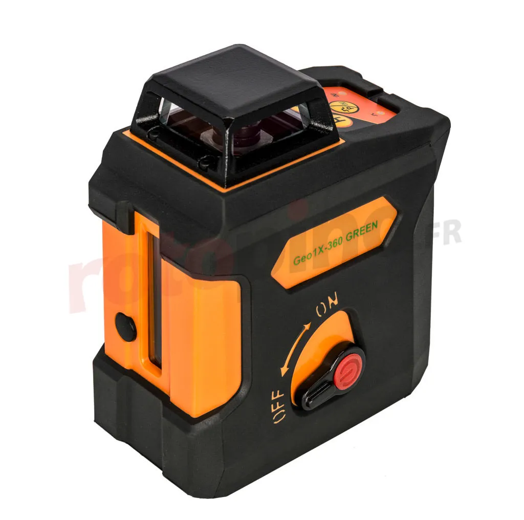 Laser en croix verte Geo1X-360 GREEN de la marque allemande geo-FENNEL (spécialisée dans la technologie de mesure depuis 165 ans) est un laser croisé de précision à nivellement automatique entièrement automatique pour les professionnels émettant un faisceau horizontal vert brillant couvrant toute la pièce et une ligne verticale croisée. Le faisceau horizontal à 360 degrés et le faisceau vertical à 135 degrés à longue portée sont parfaitement visibles dans les intérieurs lumineux, les pièces spacieuses et même les grandes salles. Un compensateur moderne et résistant règle automatiquement le niveau correct et vertical après la mise en marche du laser. Des avantages spéciaux ont été ajoutés au produit, notamment: la troisième année de couverture de la garantie, des ajustements gratuits, un service de 72 heures et un support technique.