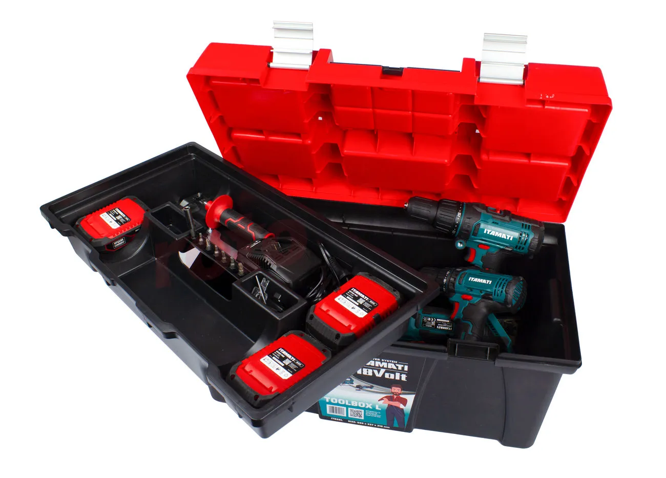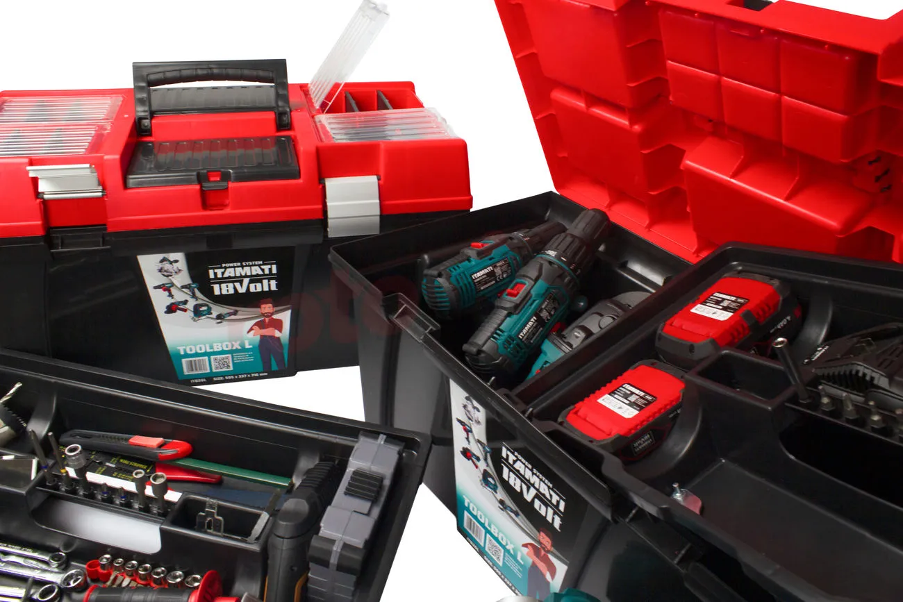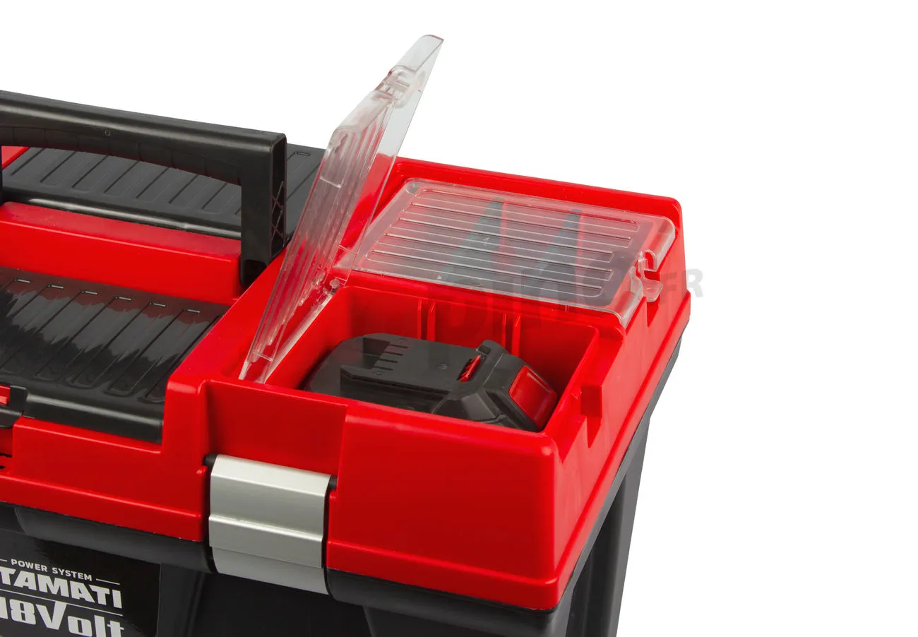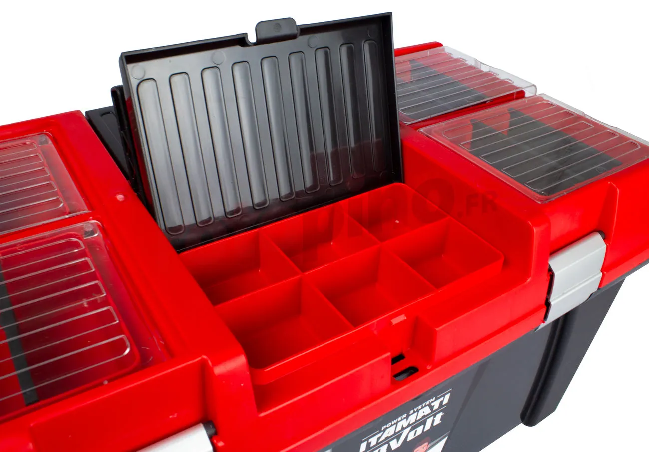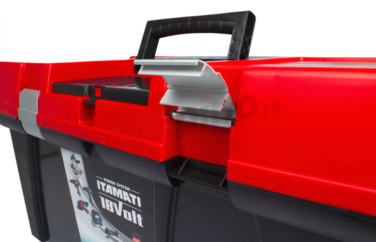 - Compatibile avec ITAMATI PowerSystem 18Volt – un coffre qui contient presque la totalité de l’ensemble et des partitions de plateau, idéalement adapté pour les batteries et le chargeur