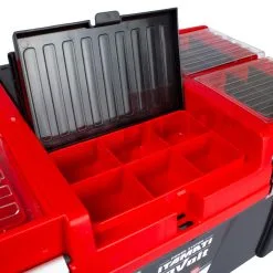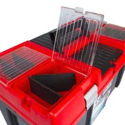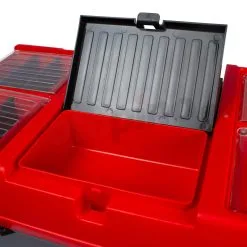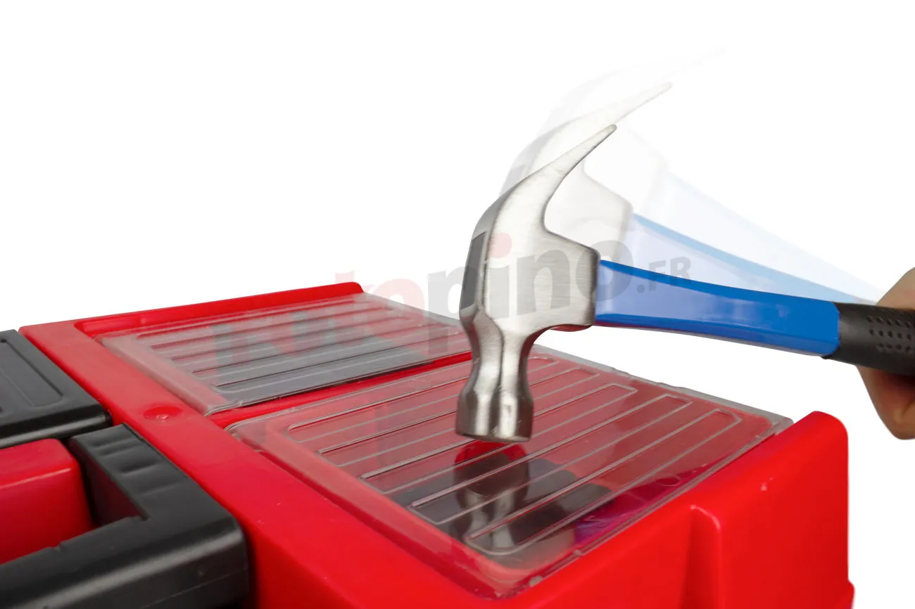 - Grande capacité – un coffre pouvant contenir jusqu’à 5 petits outils électriques, une scie circulaire ou sabre, de petits niveaux à bulle, des marteaux, etc.