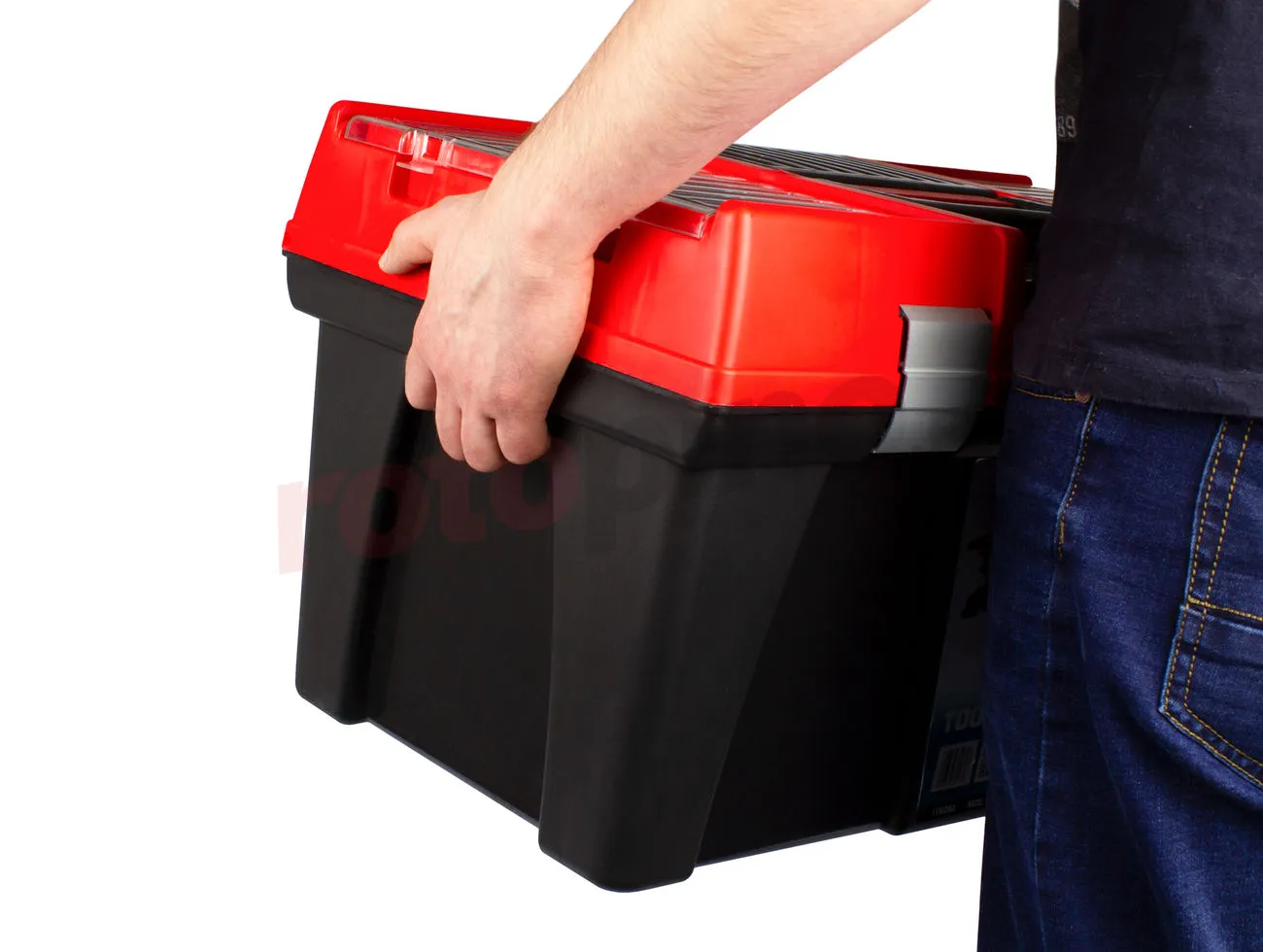 - Poignée pliable – une poignée confortable qui ne prend pas beaucoup de place facilite le retrait de la caisse du coffre, du coin du garage ou de l’atelier