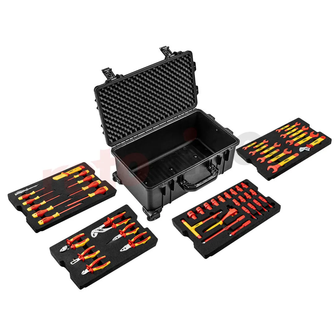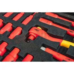 L’ensemble d’outils 01-311 Neo est une solution pratique qui vous permet d’avoir une boîte à outils complète pour une variété d’applications à portée de main. 4 inserts avec tournevis, pinces, embouts et clés mixtes sont rassemblés dans une boîte étanche et anti-poussière, ce qui garantit leur stockage et leur transport en toute sécurité. La boîte est en polypropylène solide. Il dispose d’une soupape de pression qui vous permet de maintenir un équilibre entre la pression intérieure et extérieure. Il est donc possible de se déplacer avec la valise à différents niveaux de hauteur. La boîte est également équipée de deux poignées (à porter verticalement ou horizontalement), d’une poignée télescopique et de roulettes, ce qui signifie que le transport d’un grand nombre d’outils ne sera pas un problème.