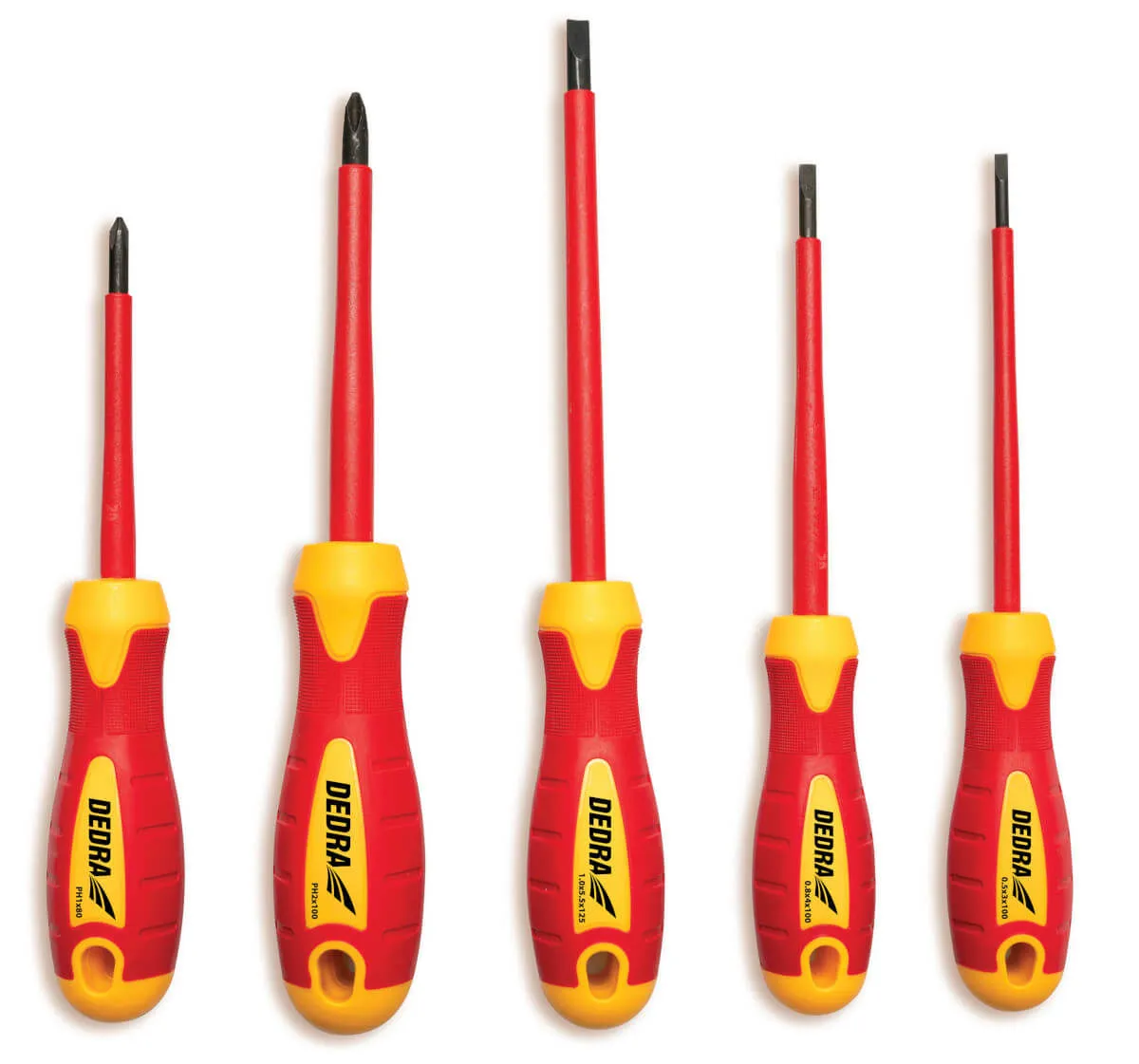 Le jeu de 5 tournevis isolés 06B050 est conçu pour des travaux électriques de précision. La tension maximale contre laquelle l’isolation appliquée protège est de 1000V. Avec les tournevis de l »ensemble, vous pouvez facilement effectuer la plupart des travaux électriques à la maison et à dans un atelier.