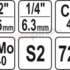 - Douilles 1/4 « : 4, 4.5, 5, 5.5, 6, 7, 8, 9, 10, 11, 12, 13, 14mm
