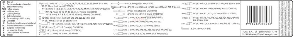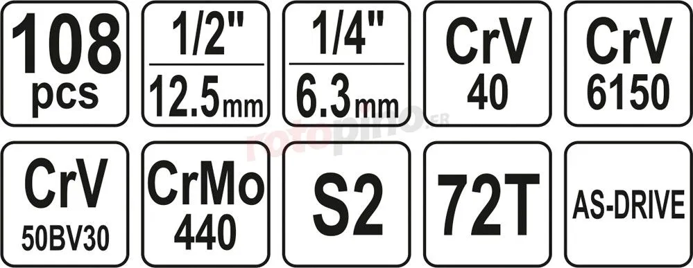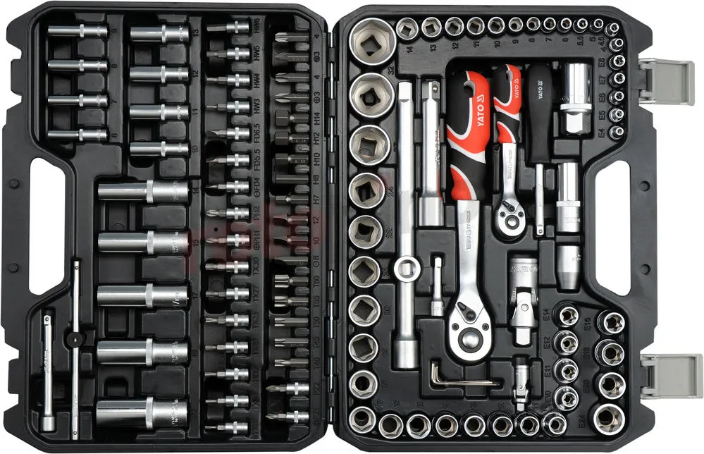 - Douilles et l’entraînement des douilles en acier durable au chrome-vanadium, tandis que les embouts de tournevis sont en acier dur S2