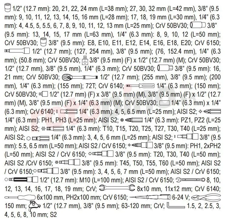 NEO Lot De 219 Cliquets Et Clés à Douilles De Haute Résistance 1/2