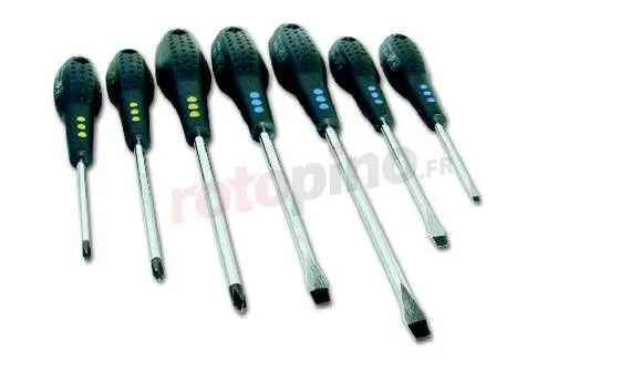 - Kit de tournevis CrV manches en caoutchouc, 7 pièces