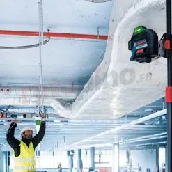 Le laser de surface GLL 3-80 G Bosch 0601063Y00 est un outil de mesure moderne émettant 3 lignes laser vertes à 360 °. Il fonctionne dans de nombreux travaux effectués par des professionnels, par exemple la suspension de plafonds, l’installation d’étagères, l’installation de portes et de fenêtres, la construction de cloisons, la pose de parquet, la planification de l’aménagement de la salle ou la pose de carreaux sur les murs et le sol. L’appareil a une construction durable avec la classe de protection IP54. Il a un verrou pendulaire pour un transport sûr, un mode de mise à niveau automatique et un mode de verrouillage, ainsi qu’un mode de fonctionnement avec un récepteur laser. Lorsque vous travaillez avec le récepteur, la portée du laser augmente à 120 m. Le modèle GLL 3-80 G est également adapté pour un montage sur un trépied 1/4 « ou 5/8 », ainsi que dans un support RM2, grâce auquel l’utilisateur a de nombreuses options pour régler l’appareil. Le laser est alimenté par des piles alcalines AA.