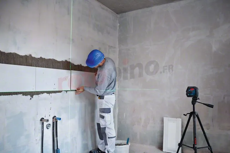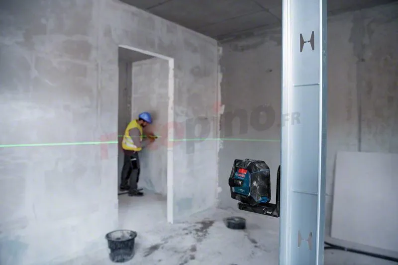 Laser en croix GCL 2-15 G Bosch 0601063W01 a une configuration de base du faisceau vert – ligne verticale et horizontale. Ils peuvent être affichés simultanément ou séparément. Grâce au faisceau vert, les lignes sont très clairement visibles. La portée maximale de fonctionnement de l’appareil est de 15 m. Le laser GCL 2-15 G fera ses preuves dans divers projets menés par des professionnels. L’outil a une construction durable avec un indice de protection IP64, ce qui est important lors de son utilisation dans des conditions de travail difficiles. Le modèle GCL 2-15 G dispose d’une fonction d’auto-nivellement et est fourni avec des accessoires supplémentaires pour un confort d’utilisation maximal.