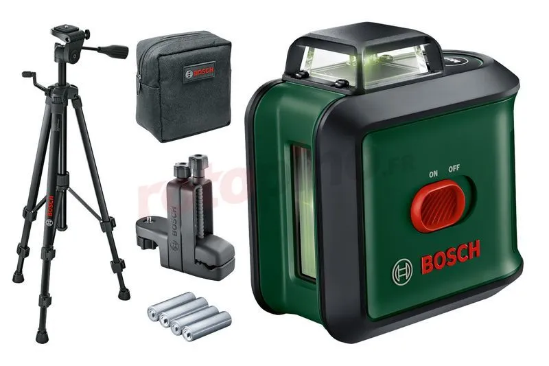 Le laser ligne UniversalLevel 360 Bosch 0603663E01 est une nouvelle version des appareils de mesure Bosch conçus pour les bricoleurs. Par rapport au modèle PLL 360, il dispose de diodes laser vertes, d’une plage de travail plus élevée, d’une meilleure qualité de ligne et d’un nouveau design. Il se caractérise également par une nouvelle configuration de lignes laser. Le laser émet une croix auto-nivelante (1H + 1V), une ligne laser horizontale 360° et une ligne laser verticale 120°. Toutes les configurations de l’appareil peuvent être configurées en mode incliné. Le laser UniversalLevel 360 est un outil universel qui peut être utilisé, par exemple, pour aligner des meubles, monter des tringles à rideaux, marquer avant peinture et tapissage, monter des carreaux muraux, monter des détecteurs de fumée ou monter des rampes d’escalier. Il existe de nombreuses possibilités – la fonction du laser dépend des besoins de l’utilisateur. L’appareil dispose d’un interrupteur qui se glisse et de seulement 2 boutons de commande, ce qui rend son utilisation très facile. L’ensemble laser comprend un trépied et un support universel qui permettent à l’UniversalLevel d’être positionné dans différentes positions.