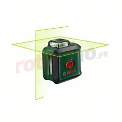 Laser ligne Bosch UniversalLevel 360 0603663E03 est une autre proposition parmi les outils de mesure conçus pour les bricoleurs. Le laser est équipé de diodes laser vertes, d’une plage de travail jusqu’à 24 m, d’une meilleure qualité de ligne et d’un nouveau design – c’est ce qui distingue le modèle PLL 360. L’outil de mesure Bosch peut fonctionner en 3 modes, affichant une ligne horizontale à 360 °, une ligne verticale à 120 ° ou l’intersection ligne. Toutes les configurations répertoriées peuvent être définies en mode pente. Le laser UniversalLevel 360 fera ses preuves dans une variété de travaux de rénovation et d’assemblage, tels que l’alignement de meubles, l’installation de tringles à rideaux ou la pose de papier peint. L’appareil est équipé d’un interrupteur à glissière et de seulement 2 boutons de commande, ce qui rend son fonctionnement simple et rapide. L’ensemble avec le laser comprend un trépied, grâce auquel il est possible de positionner facilement le laser.