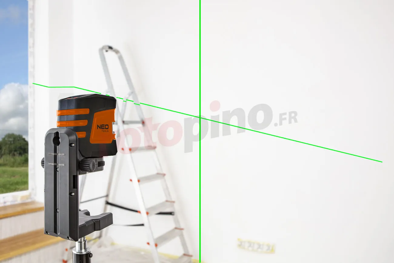- Un faisceau laser vert – lignes clairement visibles à l’intérieur des pièces.
