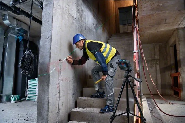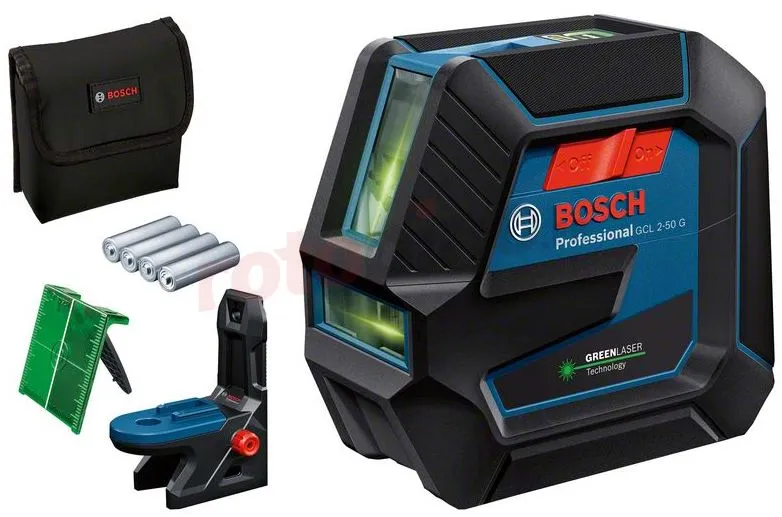 Laser point de ligne Bosch GCL 2-50 G 0601066M00 est un appareil de mesure professionnel conçu pour déterminer et vérifier les lignes horizontales et verticales et les points perpendiculaires verticalement. Un excellent appareil dédié aux travaux de rénovation liés au carrelage, à l’installation de plafonds suspendus, ainsi qu’à la fixation d’étagères, de peintures et autres éléments muraux. Le laser est équipé d’un faisceau laser vert et permet la projection de 2 lignes qui se croisent à angle droit et de 2 points verticaux centrés. La construction robuste avec un boîtier recouvert de caoutchouc et des éléments en verre encastrés dans le boîtier, ainsi qu’une classe de protection IP 64 contre la poussière et les éclaboussures d’eau lui permettent de résister à des conditions de travail difficiles.